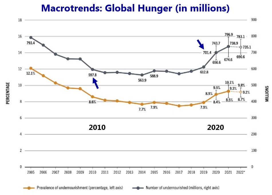 3World Hunger Statistics. 2025. Macrotrends. https://www.macrotrends.net/global-metrics/countries/wld/world/hunger-statistics