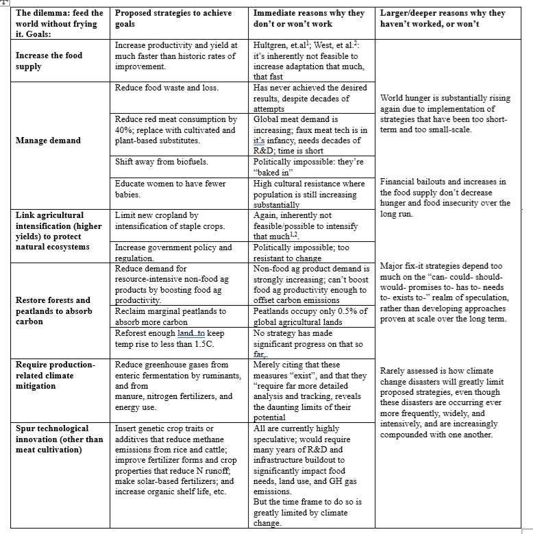 A summary of conventional strategies to reduce food insecurity while mitigating the effects of climate change, and why they don’t or won’t work