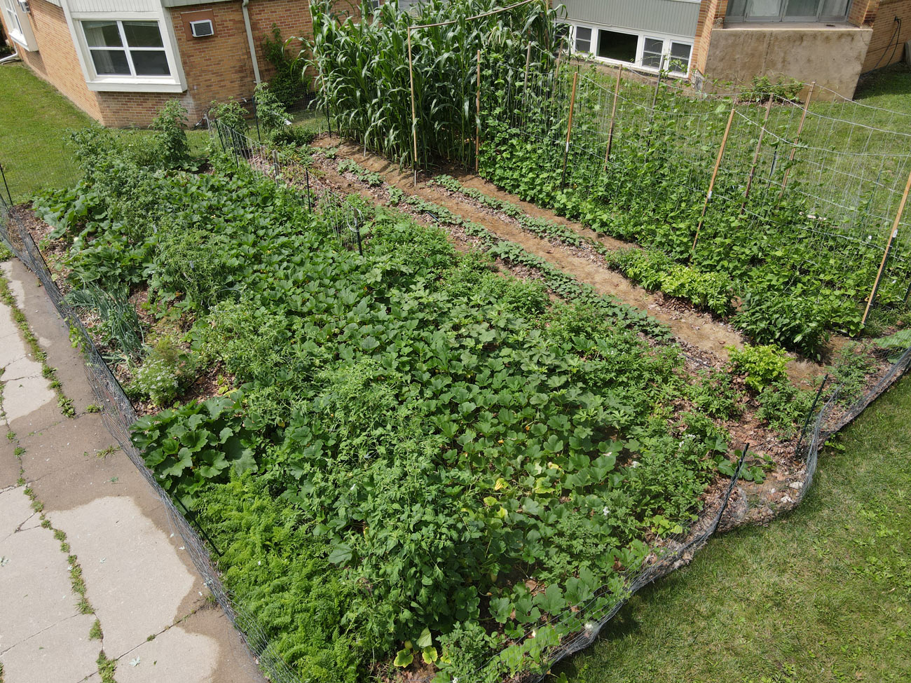 In the book I mention that I planted my 2019 corn crop with 4 feet between rows and 8-10 inches between plants in a row, and discuss how with spacing as close as commercial corn (2½ feet between rows, 6” between plants in a row) I would have gotten a good bit higher yield than the industry average. But then one of my reviewers said, “Prove it.” However, I think spacing of 2 ½ feet and 6 inches is too close. So I planted double rows 3½ feet apart with 8” between any two plants. So far it’s been growing like gangbusters. It will be interesting to see if the yield rate exceeds the national average for corn. I’m betting it will.